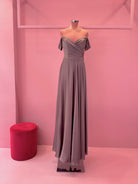 Vestito lungo, con scollo a cuore incrociato e spalline cadenti. La gonna fluida e morbida dona eleganza e movimento