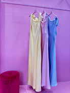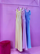 Vestito ungo in raso azzurro polvere, dal taglio fluido ed elegante. Davanti è minimal con scollo morbido drappeggiato, mentre sul retro è protagonista un ampio scollo sulla schiena con laccetti sottili regolabili che valorizzano la silhouette. Raffinato e sensuale, perfetto per occasioni speciali ✨