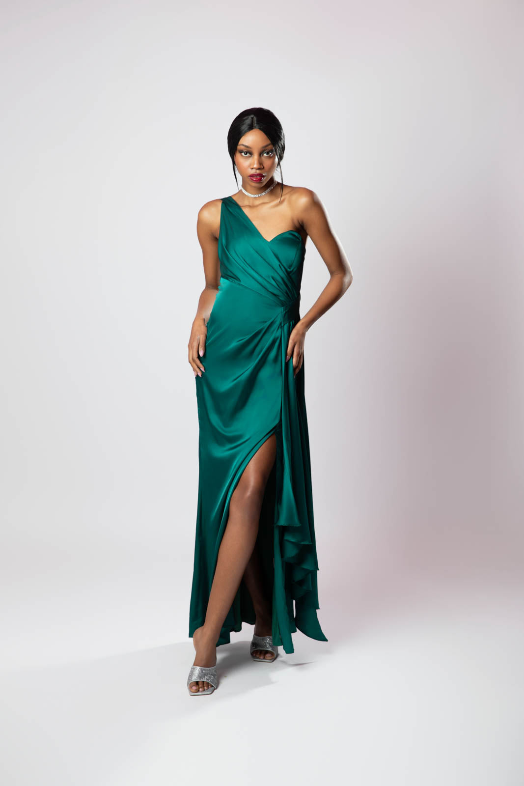 Elegante e sofisticato, questo abito monospalla incanta con il suo design raffinato che esalta la silhouette con grazia e modernità. Il taglio asimmetrico aggiunge un tocco di originalità, mentre il tessuto fluido dona leggerezza e movimento. Disponibile nelle tonalità verde e rosa, è perfetto per occasioni speciali e serate eleganti, un capo che unisce femminilità e charme in un design senza tempo.